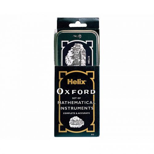 Vintage Oxford maths set in large, embossed metal tin with traditional design, supplied in retail counter display unit.