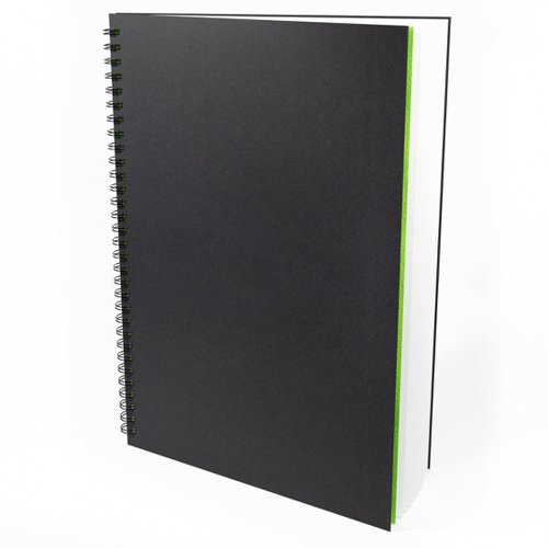 Acid free, premium white cartridge paper with a medium surface - making it suitable for all media. It features a twin wire bound edge which allows the book to lie flat and makes page turning a breeze. In addition to the high quality FSC certified paper, we've added sturdy, black, hardback covers front and back with a 'soft touch' laminated finish making them both durable and wipe clean.