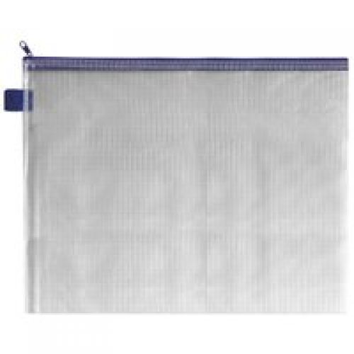 - These A4 zip bags are made of durable, heavy-duty PVC and mesh weave, meaning that they are tough, long-lasting and water resistant. They are ideal for storing documents, pads, pens and other stationery objects. Transparent so that you can easily identify contents, they also have a bright blue top strip to stand out.