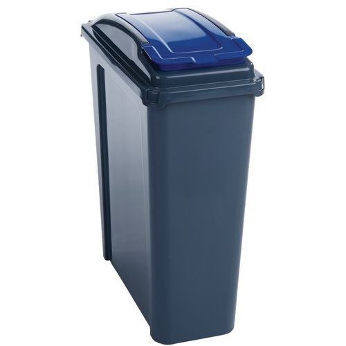 Capacity L: 25. Depth mm: 400. Height mm: 510. Lid Colour: Blue. Material: 100% polypropylene. Product Type: Lift top bins. Width mm: 190.
