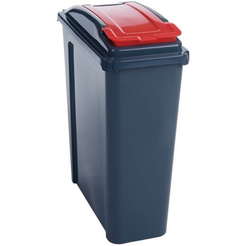 Capacity L: 25. Depth mm: 400. Height mm: 510. Lid Colour: Red. Material: 100% polypropylene. Product Type: Lift top bins. Width mm: 190.