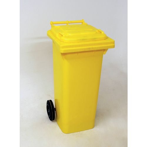 Capacity L: 80. Colour: Yellow. Depth mm: 525. Height mm: 930. Material: UV stabilised polyethylene. Product Type: Two wheel bins. Width mm: 445.