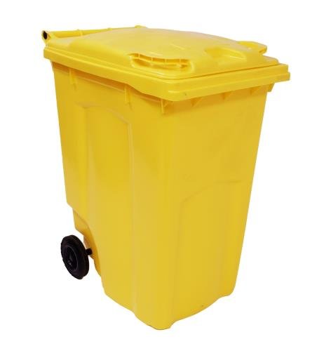 Capacity L: 360. Colour: Yellow. Depth mm: 860. Height mm: 1070. Material: UV stabilised polyethylene. Product Type: Two wheel bins. Width mm: 620.