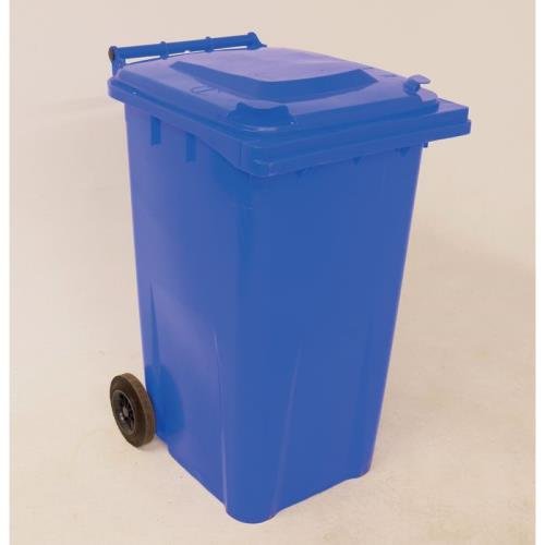 Capacity L: 240. Colour: Blue. Depth mm: 740. Height mm: 1070. Material: UV stabilised polyethylene. Product Type: Two wheel bins. Width mm: 580.