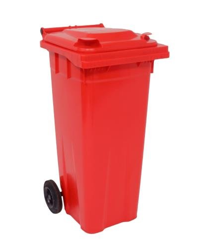 Capacity L: 140. Colour: Red. Depth mm: 555. Height mm: 1070. Material: UV stabilised polyethylene. Product Type: Two wheel bins. Width mm: 480.