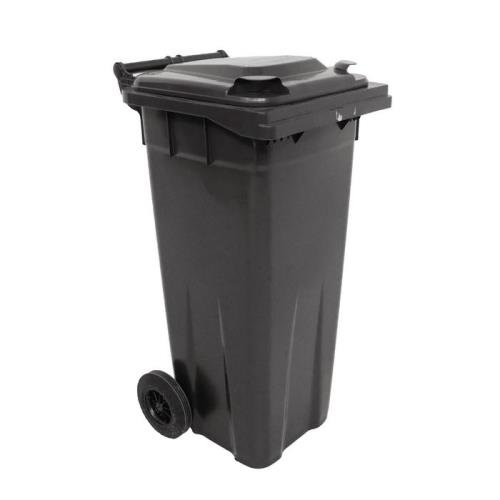 Capacity L: 140. Colour: Grey. Depth mm: 555. Height mm: 1070. Material: UV stabilised polyethylene. Product Type: Two wheel bins. Width mm: 480.