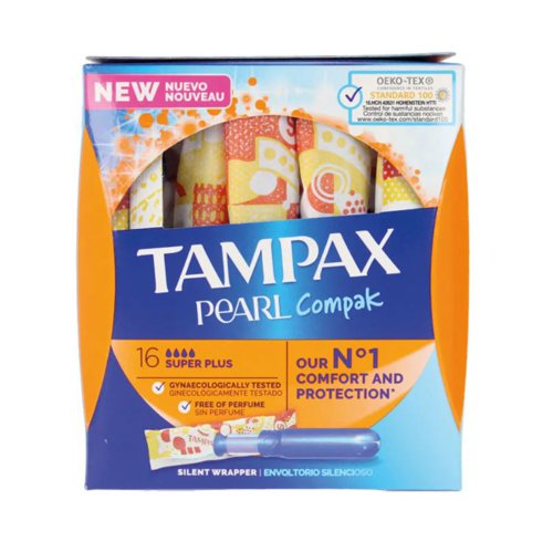 | Tampax Pearl Compak Super Plus is Tampax' best tampon for super plus absorbency |