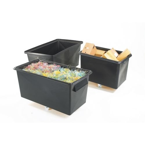 - Base Material: Plywood. Capacity L: 307. Colour: Black. Construction: Tapered . Dimensions: H x W x L mm: 737 x 749 x 1041. Height mm: 737. Length mm: 1041. No. of Wheels: 4. Product Type: Without lid. Type: Without lid. Wheel Type: 2 x 75mm & 2 x 100mm Fixed nylon castors in diamond pattern. Width mm: 749.
