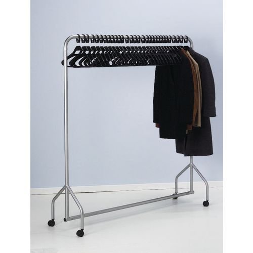 - Colour: Silver/grey. Depth mm: 500. Dimensions: H x D x L mm: 1730 x 500 x 1830. Finish: Epoxy coated. Finish: Painted steel. Height mm: 1730. Includes: with 30 grey hangers. Length mm: 1830. Material: Steel tube. Product Type: Rails. Type: Rail with 30 grey hangers.