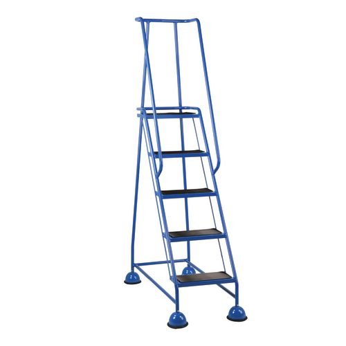 Colour: Blue. Finish: Painted. Handrail Type: Full. Material: Steel. No. of Treads: 5. Overall Height mm: 1940. Platform Depth mm: 280. Platform Height mm: 1270. Platform Width mm: 380. Tread Depth mm: 180. Tread Material: Ribbed rubber. Tread Material: Rubber. Tread Type: Ribbed rubber. Weight kg: 20.