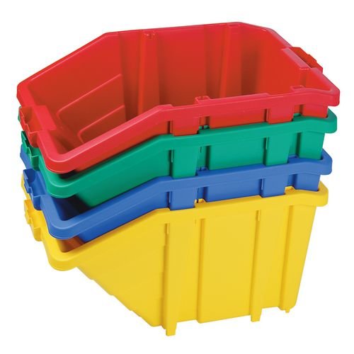- Colour: Red. Depth mm: 635. Depth mm: 640. Dimensions: H x W x D mm: 335 x 430 x 640. Height mm: 335. Height mm: 345. Material: Plastic. Material: Polypropylene. Product Type: Large picking bins. Type: With lid. Width mm: 400. Width mm: 430.