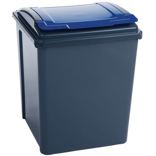 Capacity L: 50. Depth mm: 400. Height mm: 510. Lid Colour: Blue. Material: 100% polypropylene. Product Type: Lift top bins. Width mm: 400.
