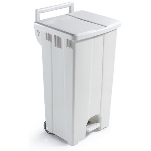Body Colour: White. Capacity L: 90. Depth mm: 465. Dimensions: H x W x D mm: 920 x 510 x 465. Height mm: 920. Lid Colour: White. Type: Mobile, pedal. Width mm: 510.