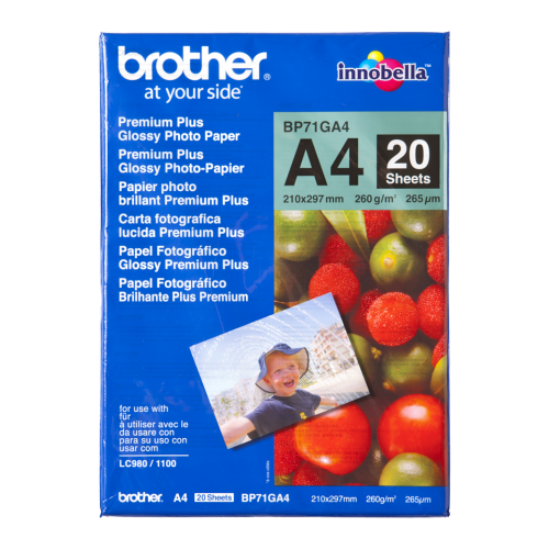 - Keep your Brother printer performing at its best and make sure your documents always look their most impressive by installing a stack of BP71GA4 A4 Photo Glossy Paper in your paper tray. Ideal for use when printing everything from photos to posters, this BP71GA4 paper helps you get the most from with your Brother inkjet printer, ensuring that your documents are always delivered quickly, efficiently and with 100% accuracy. Expertly designed to work in harmony with your Brother printer, this genuine BP71GA4 Glossy A4 Photo Paper ensures your documents are reproduced crisply and cleanly, providing you with a finished product that's sure to impress.